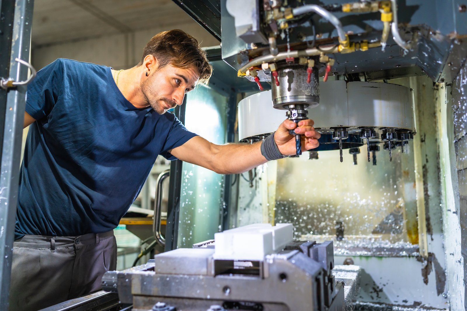 Maschinen- und Anlagenführer/innen mit dem Schwerpunkt Metall- und Kunststofftechnik arbeiten an Maschinen und Anlagen zur Herstellung von Bauteilen, Baugruppen und Produkten aus Metall und Kunststoff. Bevor sie die Produktion starten, sichten sie die Auftragsunterlagen und stellen die erforderlichen Materialien (z.B. Metallwerkstoffe, Kunststoffgranulate) bereit. Anschließend richten sie Anlagen wie Dreh-, Bohr-, Schleif-, Säge- oder Umformmaschinen ein, beschicken diese, nehmen sie in Betrieb und bedienen sie. Auch die Montage von Baugruppen gehört zu ihren Aufgaben. Sie überwachen die Produktionsprozesse einschließlich der Qualität und Verpackung der fertigen Produkte und greifen bei Abweichungen in der Qualität oder bei Störungen im Prozessablauf korrigierend ein. Zudem warten sie regelmäßig die Maschinen, um deren Betriebsbereitschaft sicherzustellen. Sie füllen beispielsweise Öle oder Kühl- und Schmierstoffe nach und tauschen Verschleißteile wie Dichtungen, Filter oder Schläuche aus.